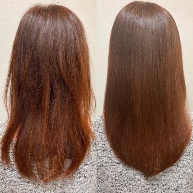大人気メニュー「髪質改善プレミアムトリートメント」のビフォーアフターです