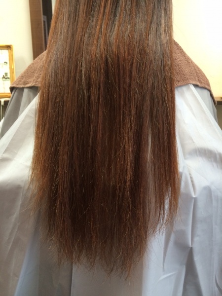 この長さになっても「以前のような枝毛がないっ」と喜んでいただいております。<(_ _)>