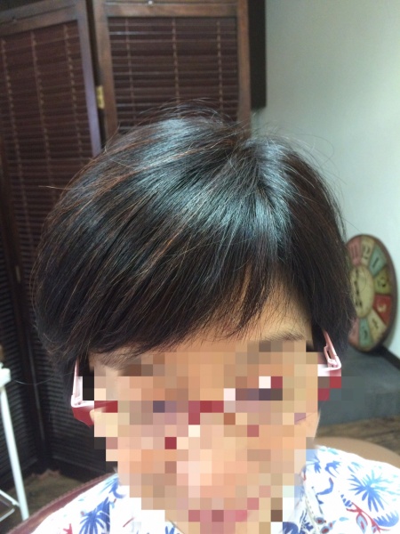 前髪はアクセントにアシンメトリーバング(ななめ前髪)としました。